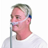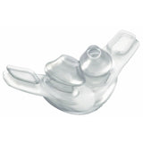 - Gently pull the mask away from your face and then release it, allowing the tips of the nasal pillows to inflate and settle comfortably inside your nose.